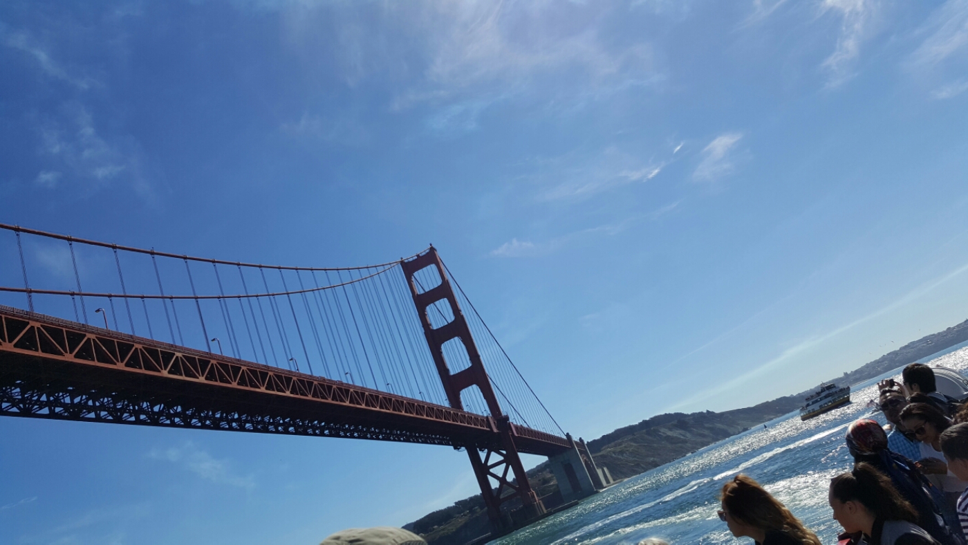 Die Flug Show hat der Rundfahrt zwar etwas die Show gestohlen, aber es war schon ein Erlebnis unter der Golden Gate Brücke durch zu fahren. Bei strahlendem Sonnenschein gab es eine super Tour, inklusive dem ersten Sonnenbrand. Die Insel ist die berühmteste Gefängnis Insel der Welt, Alcatras.