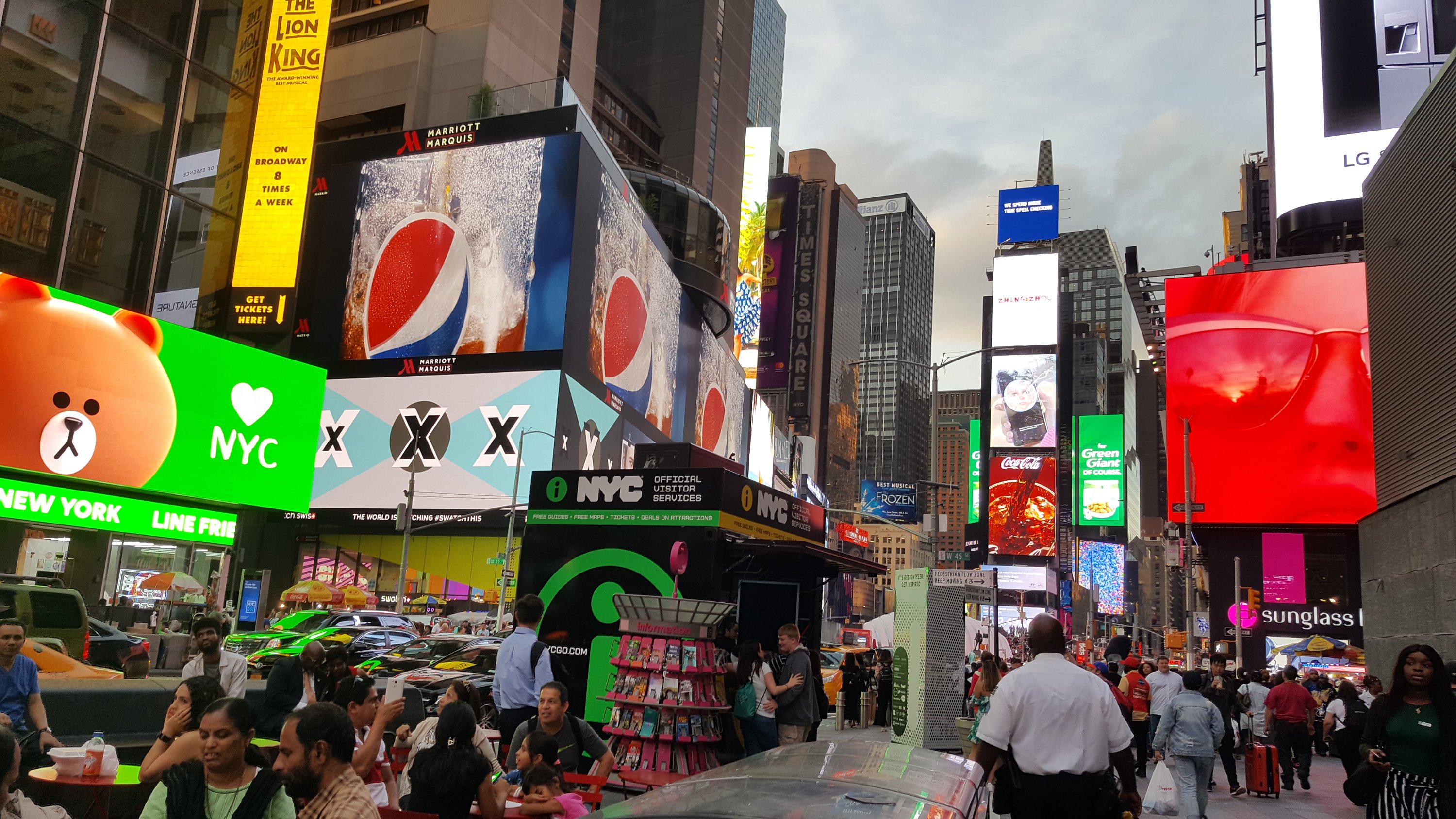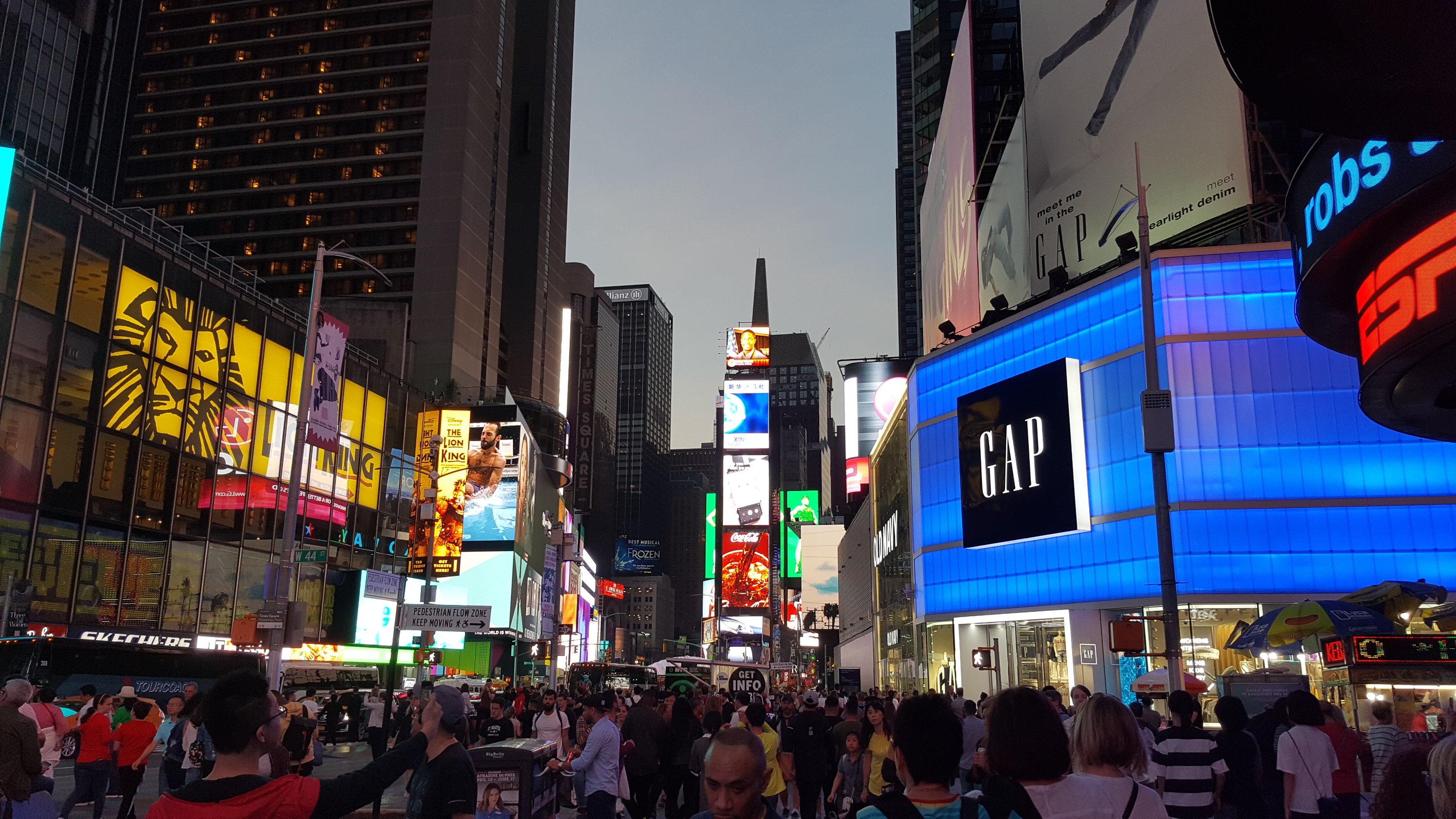 Dumm darf man sein, man muss sich nur zu helfen wissen, sagte mein Opa (oder war es meine Oma? Egal). Auf dem Weg zur vollen Brücke hatte ich eine Haltestelle von den Hop on Hop off Bussen gesehen. Und da ich noch „Guthaben“ auf meiner New York Karte hatte, kaufte ich mir ein Ticket und fuhr zum Times Square. Von dort war es gefühlt nicht mehr weit.
