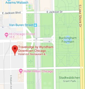 Der Vorteil bei einer so langen Vorlaufzeit ist ja, dass man sich bei den Hotels noch ein wenig umschauen kann, ob es nicht noch etwas anderes gibt. Und die Erfahrung zeigt, es lohnt sich. Für Chicago bin ich vom Hostel auf ein Hotel umgestiegen, mitten im Zentrum. Quasi direkt am, ja fast schon im, Grand Park.
