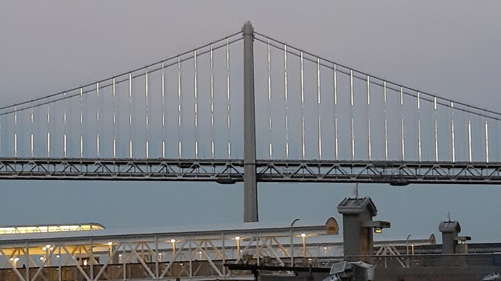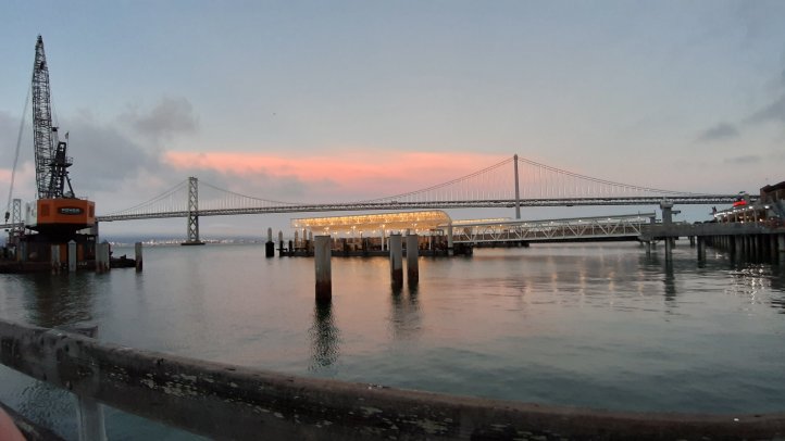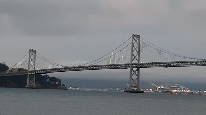 Wieder etwas Kraft getankt wollte ich mir noch die Oakland Bridge im dunklen anschauen. Gut ganz dunkel ist es nicht geworden.