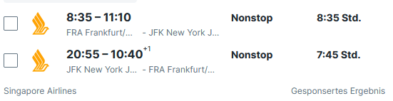 Wenn ich mir die Flüge anschaue, ruft das Portal flieg zum JFK Airport, da gibt es einen super Flug wo das Gepäck schon inklusive ist. Allerdings müsste man dann schon eine Nacht vorher in Frankfurt anreisen.