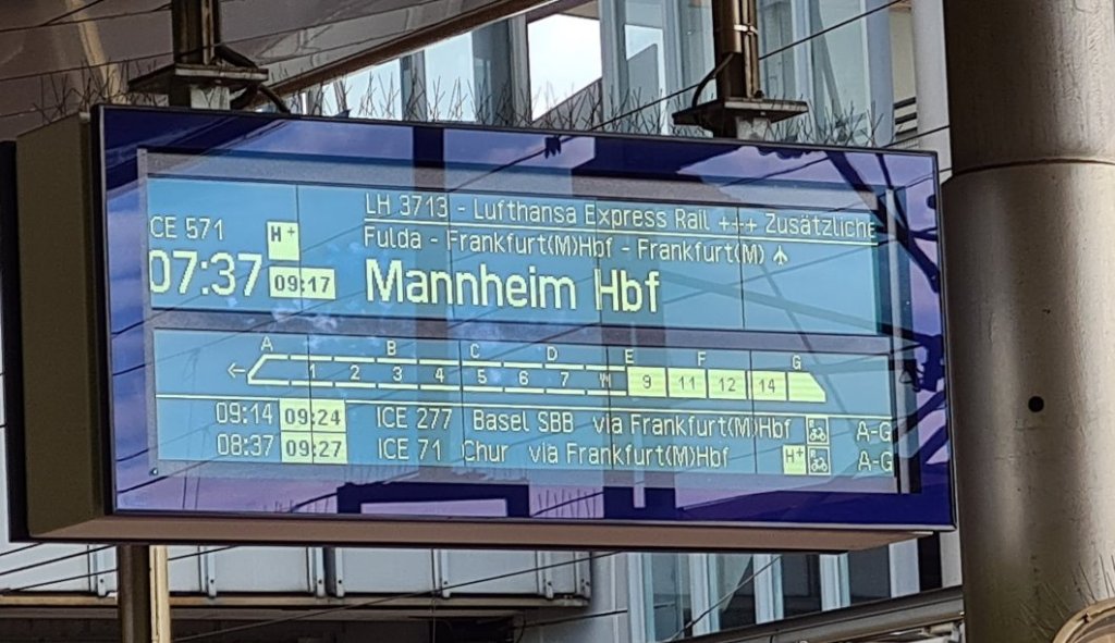 Um halb neun sollte der ICE fahren, ist er aber nicht. Alle Züge bom Gleis 2 hatten mehrere Stunden Verspätung. Und es war schon recht kalt so früh am Morgen in Kassel.