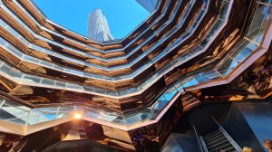 The Vessel ist eine der neuen Touristen Attraktionen in New York. Anfangs konnte man das wabenähnliche Kunstwerk auch noch hoch steigen. Nachdem allerdings mehrere Menschen von der Wabe runter gesprungen sind, wurde sie für das Publikum geschlossen.