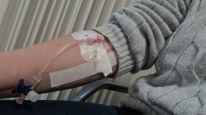 Eine Schwester klemmte mich an alles an, was da so an Geräten rum stand, EKG, Blutdruck, Puls und Sauerstoff Sättigung. Beim zweiten Versuch saß auch die Braunüle im Arm. Der erste Versuch hatte leider einen sehr unschönen Bluterguss hinterlassen, Blut kam aber erst beim zweiten Versuch.