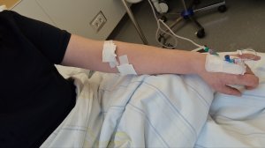 Während der Assistenzarzt an dem Zugang rum bastelte, fragte er mich noch mal nach der Anzahl der Dosen. Heute wäre es laut meiner Aussage Nummer 2 schaute er mich mehr fragend als wissend an. Also zückte ich mein Handy und zeigte ihm das Bild, welches ich von Flasche Nummer 1 gemacht hatte. Sein Gesichtsausdruck sprach Bände. Das ist das falsche sagte er nur knapp.