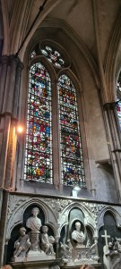 Vom London Eye sind es nur ein paar 100 Meter bis zur Westminster Abbey, der Kathedrale der Königs Krönung und auch der Beisetzung, zumindest bis 1760. Gebaut wurde das prunkvolle Gebäude ab 1245, hat der Audio Guide erzählt. Ursprünglich stand auf dem Fleck eine kleine und bescheidene Abtei, die im Jahr 960 erbaut wurde. Bescheiden ist an der heutigen Kathedrale nicht mehr so viel.